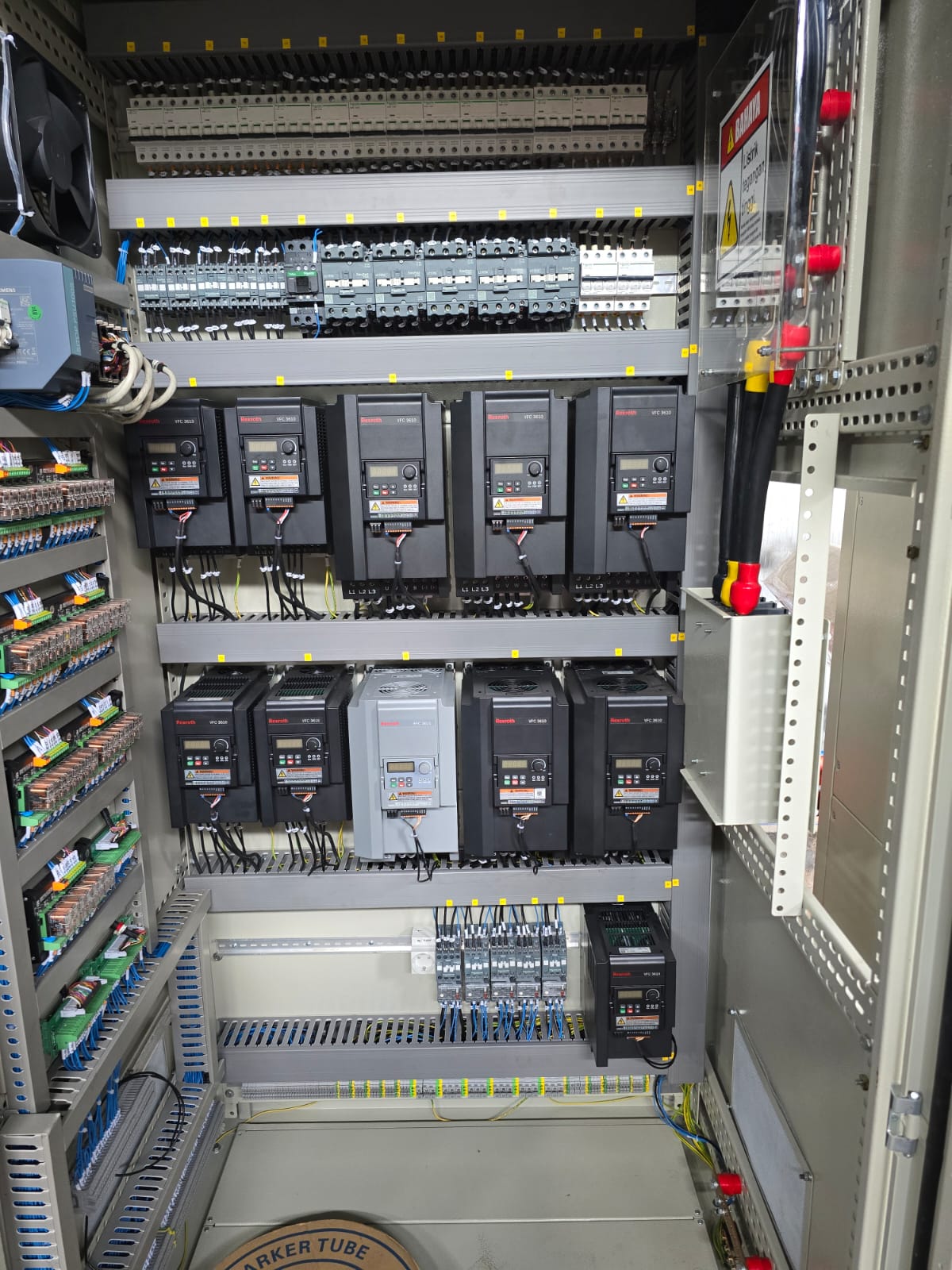 Wiring panel dalam industri merujuk pada proses perancangan, pemasangan, dan pengelolaan kabel serta komponen elektrik di dalam panel kontrol atau panel distribusi listrik. Panel ini digunakan untuk mengelola daya listrik, mengontrol mesin, dan mengintegrasikan berbagai sistem otomasi dalam suatu proses industri.